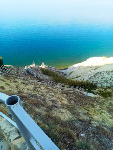 Read moreБыла 23.07.2020.Мы ездили на машине, остановится можно почти рядом и пройти немного до берега со спуском вниз.Открывается красивый вид с верху вниз и вокруг. Проход бесплатный. Ступеньки на участке спуска-подъема, почти все металлические, не сломанные. Весь маршрут спуска огорожен парапетом, есть лавки на которых можно передохнуть. Внизу береговая линия не широкая, каменистая, но камни не острые,практически одинакового размера, не нужно перепрыгивать. По любому, идти туда нужно в удобной обуви. Вход в море тоже каменистый, есть скользкие камни, заходить нужно аккуратно, чтобы не навернуться и не переломать себе что нибудь. Вода чистейшая, комфортная по температуре. Кто хочет плавает, загорает. Очень удобно войдя в море просто сесть или лечь на камни, и морская вода как бы омывает тебя. Ни каких кафешек, туалетов, кабин для переодевания и ничего в этом роде там нет,спасателей тоже.Поэтому перекусить или пить нужно брать с собой. Береговая зона чистая,но единичный мусор иногда встречаетя. Какого то большого скопления народа нет. Спустившись,люди располагаются на этом диком пляже на достаточном растоянии в метрах 5-10 друг от друга, никто никому не мешает и не толкает тебя. Лучше приезжать пораньше утром и начать подъем обратно до 12,пока нет такой жары Подъем обратно, конечно тяжелее чем спуск для непривычных к активным движениям, но, можно присесть на лавочку передохнуть, да и просто постоять, народа немного, никто друг друга не подгоняет. Я считаю что посетить это место хотя бы...