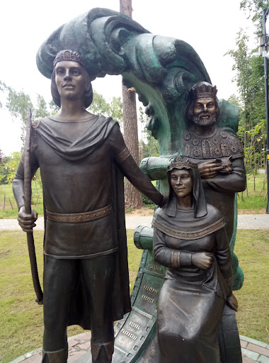 Царь Салтан с царицей, и его сын Гвидон... Образы скульптур взяты из одноименного фильма, главные роли в котором сыграли Лариса Голубкина, Владимир Андреев и Олег Видов. Автор скульптурных композиций - заслуженный художник России Александр Рожников.