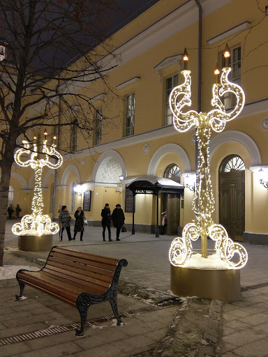 Read moreМалый театр - один из старейших театров России. В 1824 году по проекту Осипа Бове архитектор А. Ф. Элькинский перестроил для театра особняк купца Варгина, и поныне это здание на Театральной площади называется Малым театром. А в 1838-1840 годах архитектор К. Тон достроил здание и изменил внутреннюю планировку. Для театра писали многие, но особое значение имеет А. Н. Островский. 48 пьес были поставлены в театре в разные годы, поэтому неофициальное название "Дом Островского". Каждый сезон театр выпускает 4-5 новых спектакля. В 2014 году театр был закрыт на реставрацию, а в 2017 году был открыт и стали здесь проводиться экскурсии. Проводит их главный хранитель музейного фонда Телегина Н. В. (стоимость - 750 руб., льготный - 350 руб., продолжительность более 2 часов). Экскурсия начинается на 1 этаже - гардероб, фойе и продолжается на 2 этаже - главное фойе, где четыре скульптуры знаменитых писателей и два портрета - М. Щепкина и П. Мочалова. Дальше экскурсия продолжается в служебных помещениях: директорская ложа с выходом в зрительный зал, где красивые интерьеры, в будку суфлера, где редко в каком театре ещё есть, потом в помещение под сценой. Далее артистическое фойе Ермоловой - это вотчина труппы и оркестра, потом по коридорам гримерок (только у трёх актёров личная гримерная - мужчины), можно туда заглянуть (у театра свои пошивочные и обувные мастерские в Нагатино), административные кабинеты и потом вернулись в зрительное фойе, где проводятся различные мероприятия. Время пролетело очень быстро, жаль что в театре нет музея, ведь здесь служило столько знаменитых актёров, об этом напоминают только фотографии на стенах фойе. Огромное спасибо Телегиной Н. В. за прекрасную экскурсию. Театр продолжается...
