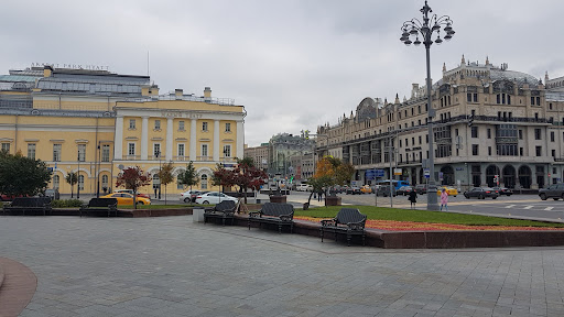 One of the main squares of the capital until 1918. It was called Voskresenskaya. It was renamed in memory of the events of the October Uprising. Previously, the Neglinnaya River flowed through the territory of the modern square, and mills and flour shops stood nearby. Later, the Kitai-Gorod wall appeared here, from the gate of which a bridge was built, and commercial buildings grew nearby. The square itself was formed only at the beginning of the nineteenth century, after Neglinnaya was removed into a special pipe.