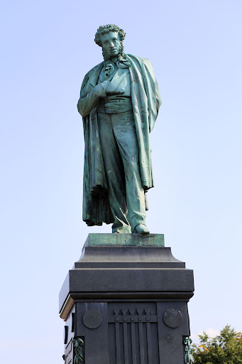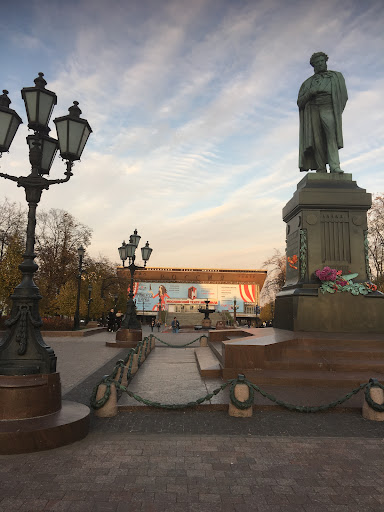Nice statue, very good area fo sitting and walk, nearby you can go to a restaurant with the name of Pushkin, and also a coffee shop, and there is a boulevard to sit or eat something, metro station, and a theater and shows center, good for pets, family...