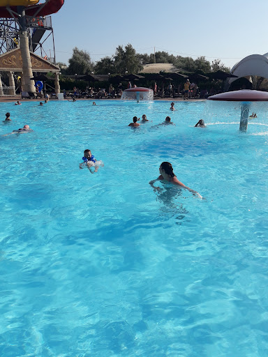 Начнем с того, что очень долго искали парковку. Припарковались достаточно далеко на частной територии за приличное количество денег. Позже, когда подошли к шламбауму перед аквапарком, где написано "частная териитория", остановились, стали разглядывать, что на полностью тонированной будке написано, к нам вышел из нее охранник и сказал " А что вы не сообщили, что в аквапарк?". А есть хоть одна табличка, что это парковка аквапарка? Тарифы по времени? Нет. Догадаться, что это не территория отелей, тем более, когда охранника внутри не видно (даже не понятно было, что там кто-то есть и можно спросить), почти на грани фантастики. Дальше ожидание очереди, где работает одна касса. Пока девушка посмотрит всех детей, прикинет их рост, можно зажариться. Охранники милашки. И на входе, и на выходе оставили приятное впечатление, на входе позадавали им вопросы, дружелюбно на них ответили. Женщина выдающая ключи заслуживает отдельного внимания. Играет в телефон, когда у нее просишь ключ, нехотя отрывается, будто одолжение делает, а не оказывает услуги за деньги. Забирает твой браслет, когда возвращаешь ключ, должна отдавать его обратно. Забегу вперед, когда мы уходили, в обмен на ключ протянула мне детский браслет (мне под 30 и рост 177). Уточнила, не будет ли проблем на выходе, мол я явно не могла зайти по десткому билету, она недовольно забрала этот и дала синий. Зона переодеваний и душа вообще странная история. Отсутсвие двери, кабинки и скамейка. Если ты хочешь после душа укутаться в полотенце и посидеть, подсохнуть, то все мужики твои. Особенно сидящие прям напротив двери, ждущие жен или просто отдыхающие. Чувствую себя звездой взрослой индустрии, могли бы и доплатить.