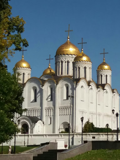 Read moreвыдающийся памятник белокаменного зодчества домонгольской Руси. Кафедральный собор Владимирской митрополии Русской православной церкви; ныне также государственный музей. Исторически, до возвышения Москвы, был главным (кафедральным) храмом Владимиро-Суздальской Руси, в нём венчались на великое княжение владимирские и московские князья. Памятник русского зодчества XII века, послуживший образцом для ряда более поздних соборов, в том числе Успенского собора Московского Кремля. Один из немногих храмов, в котором сохранились подлинные фрески Андрея Рублёва. В 1992 году Успенский собор был включён в список памятников Всемирного наследия ЮНЕСКО. Вход на хоры собора осуществлялся через лестничную башню, примыкавшую к западному пряслу северной стены храма. Фасады всеволодовых галерей членятся по вертикали пилястрами с колонками на прясла, плавно завершающиеся вверху закомарами. Аркатурно-колончатый пояс, состоящий из 114 колонок, разделяет плоскости стен на два яруса, каждый из которых имеет свой ряд щелевидных окон: более простых и узких — внизу, более широких, с перспективными скосами — вверху. Суровые глади внешних стен слегка оживлены рельефами, некоторые из которых перенесены сюда со стен собора Андрея Боголюбского, а некоторые выполнены заново во времена обстройки собора Всеволодом III. В стенах галерей, в специально созданных нишах-аркосолиях, были захоронены многие представители владимирского великокняжеского дома, а также епископы. В северной галерее захоронены сами строители собора — князья Андрей Боголюбский и его брат Всеволод III. От первоначальных фресок Успенского собора до наших дней сохранились только фрагменты. В начале XV века для украшения храма были приглашены Андрей Рублёв и Даниил Чёрный. От их росписей сохранились отдельные изображения большой композиции «Страшного суда», занимавшей всю западную часть храма, и фрагментарные изображения в алтарной части собора. Большинство же дошедших до нашего времени фресок были выполнены в XIX веке. На протяжении XVIII—XIX веков претерпел серьёзные изменения и внешний облик собора: были растёсаны окна, сооружены контрфорсы, установлена четырёхскатная кровля. Рядом с собором в 1810 году была сооружена колокольня — четырёхъярусное сооружение, имеющее в основании четыре угловых столба, с арочными проёмами (ныне заложены), и завершающееся высоким золочёным шпилем. В 1862 году по проекту архитектора Николая Артлебенамежду колокольней и Успенским собором был построен придел во имя великомученика Георгия Победоносца, который с севера слился с нижним ярусом колокольни. В конце XIX века была проведена первая научная реставрация собора. В 1882—1884 годах проводились внутренние работы, в ходе которых, в частности, были открыты фрески Рублёва; в 1886—1891 годах собор отреставрировали снаружи: были убраны контрфорсы, восстановлены растёсанные окна и позакомарное покрытие, луковичные главки были заменены равноценными шлемовидными. В XX веке собор несколько раз реставрировался. Самая крупная и продолжительная реставрация была проведена в конце 1970-х — начале 1980-х: был очищен и покрыт специальным составом белый камень, позолочены купола. Внутри собора укрепили красочный слой фресок, отрегулировали температурно-влажностный режим. Успенский собор является объектом Всемирного насле