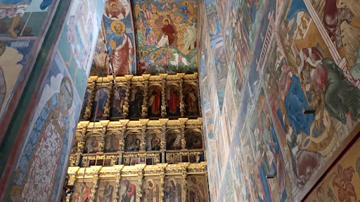 The Church of St. Elijah the Prophet in Yaroslavl is an outstanding monument of 17th-century Russian architecture and painting. It was built in 1647-1650 with the funds of the wealthy merchants, the brothers Vonifatiy and Ioannikiy Skripin, descendants of Novgorodian settlers who became rich through the trade of furs and precious stones. The church was erected on the site of two wooden churches, the cold Ilyinskaya Church and the warm Pokrovskaya Church, which were mentioned in 1612 in connection with the miracle of the healing of a blind man during the procession of the icon of the Savior. The name of the church is associated with the legend of Yaroslav the Wise, who defeated a bear, the symbol of the local pagan tribes, on Elijah's Day, and founded the first Christian church in the city on this site. The church's uniqueness lies in its almost unchanged appearance since the 17th century: a five-domed quadrangle with a tent-shaped side chapel and a bell tower, surrounded by asymmetrical galleries and porches with carved white stone inserts. In 1658, the church miraculously survived a terrible city fire thanks to the metal lining of the doors and windows, which prevented the flames from entering. The church's main treasure is its fully preserved frescoes from 1680, which were created in three months by a team of 15 artists led by the Kostroma painters Guriy Nikitin and Sila Savin. The murals include 970 subject labels, including the famous "Harvest" and the cycle of the deeds of the prophet Elijah, as well as rare images inspired by...
