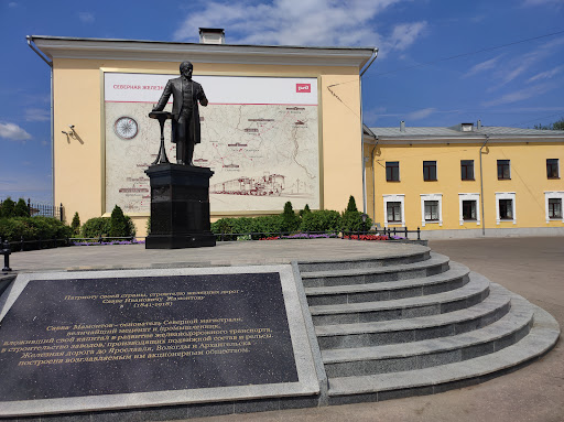 Read moreШестиметровый бронзовый памятник русскому промышленнику и меценату Савве Мамонтову на привокзальной площади был открыт в 2008 году, в честь 140-летия Северной железной дороги. Мамонтов держит в руках часы (по замыслу циферблат символизирует время) и циркуль (бескрайнее пространство северных территорий, которые объединяла железная дорога). По периметру постамента четыре бронзовых панно, где указаны годы жизни Мамонтова, и изображены крупнейшие вокзалы - "Ярославль", "Вологда" и "Рыбинск". Рядом с Саввой установлены две гранитные плиты: на одной показана карта железной дороги того времени, а вторая с...