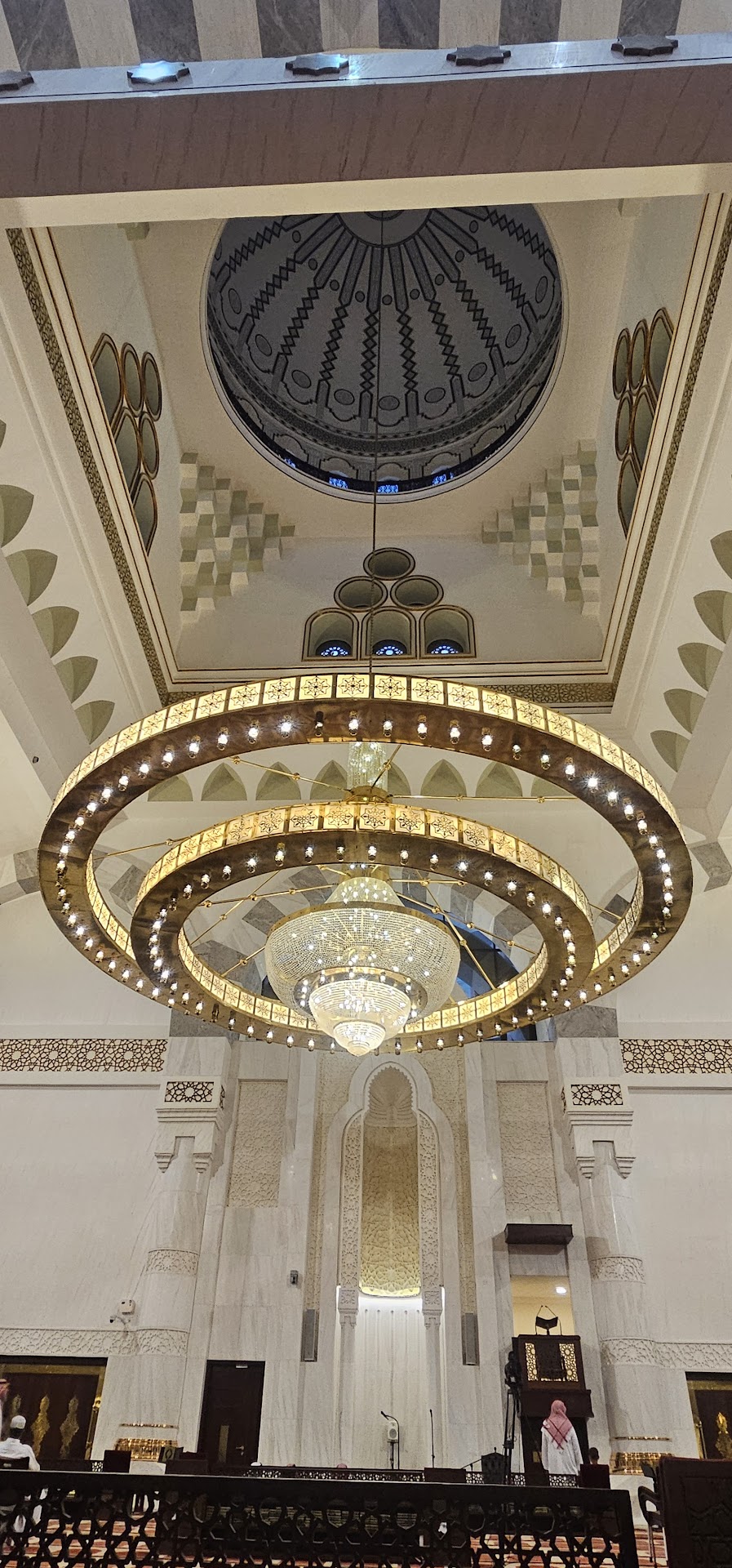 Interior Design: The prayer halls are adorned with white and black marble, reflecting Ottoman-style decoration. The men's prayer area spans three floors, while the women's section comprises two floors.