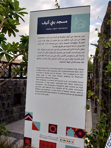 Read moreThis mosque has been preserved in its ancient form and marks the site where the Prophet (PBUH) was first welcomed by the Ansar in Madinah and where he prayed before proceeding onwards to Madinah. It's named after Banu Anif which used to inhabit this area.