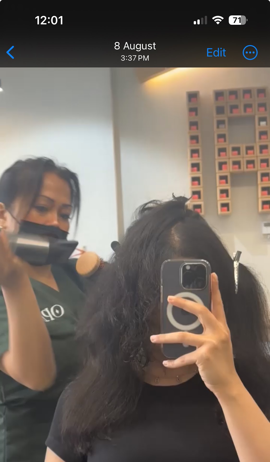 What truly shocked me was that no heat protectant or product of any kind was used before blow drying. Not even a basic leave-in or serum. Every single professional salon Iโve ever been to applies a heat protectant as a minimum itโs the most basic standard of care to protect the clientโs hair from damage. But apparently, thatโs not a priority here.