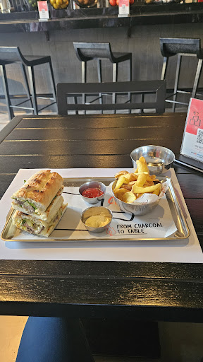 Read moreWhat an Amazingly Fresh experience🤠!! We went there for a quick bite today & were wonderfully surprised by an amaxingly unique & bar-like interior. The server was very attentive & courteous, were served with welcoming fresh crispy pop corns. Ordered the "Tapenade Chicken Sandwich", "Coal Steak 🥩Sandwich (medium rare)" & "Coal Fries". Our server even inquired about the grade of Steak and food allergies. Amaxing service. Both Chicken and Steak sandwiches were simply succulent 🤤& aromatic. The ingredients & sauces are all high grade and fresh, but the taste of that mouth watering Steak Meat should be felt more. Overall uniquely delicious including side sauces. Coal Fries were good also. Highly recommended to visit. Will surely...