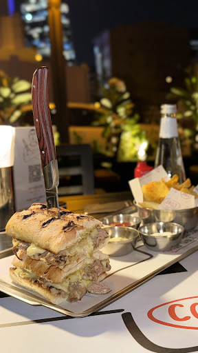 Read moreI just saw an ad for this place on Instagram, and I found it's just 3 minutes walking distance from my office. I got out and tried it immediately. I love a good steak sandwich, and it delivered on this aspect. The Steak sandwich was amazing by all means, the chips were fantastic, and the atmosphere was good and staff were very nice. The downside is the price to portion ratio! This could be easly my go to place for lunch while at work. But, for only half a sandwich which is cut in half, so 2 quarters with no sides at all, it's a bit over priced. It's nice to try it once, but for the same price -actually less- you can have a three course lunch with refillable soft drinks few meetrs ahead in Outback steak house during lunch offer, which is an actual steak house! My thoughts to management, please do a lunch offering or something, have the sandwich with chips and soft drink included in that price tag. Also, include in the menu a full size sandwich with additional cost, to those who REALLY love steak...