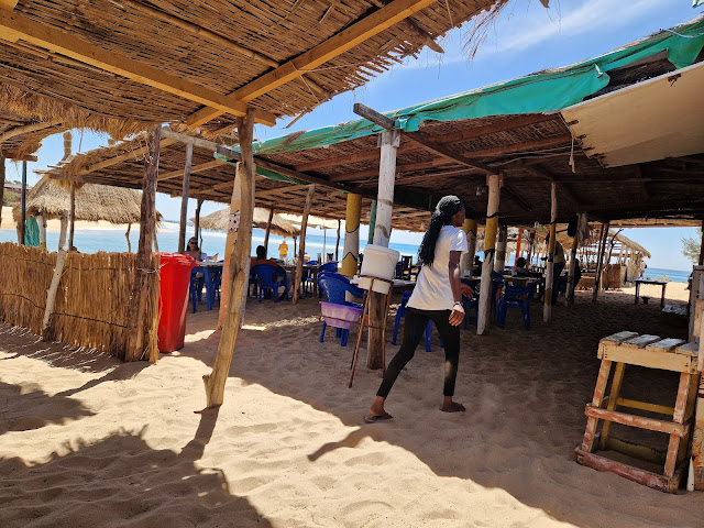 Det finns restauranger att Àta pÄ för runt 6000 cfa. Man kan med fördel vÀlja de minst populÀra för att fÄ lugn och ro! Vi Ät pÄ Chez Adams och maten var god och enkel. Trevlig personal och sköna solstolar precis vid vattnet. Lungt och inte mÄnga besökare!