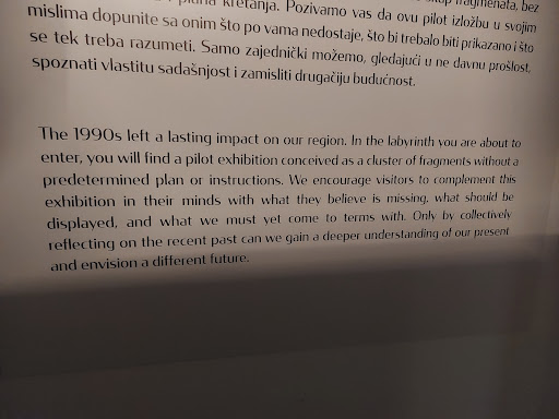 Incredibly impressive and important exhibition about what Yugoslavia felt during the 90s that was obviously the time of the breakup and war in former Yugoslavia. It provides an educated and well balanced view in a country that suffers heavily from nationalistic tendencies and thus is important to reflect on one's own perspective on the world. As a German I was very moved to see how this region fell apart whilst we enjoyed the forming of the European Union. It made me humble and grateful. Many people should see this and remember how lucky we are to have peace in Europe. We should...