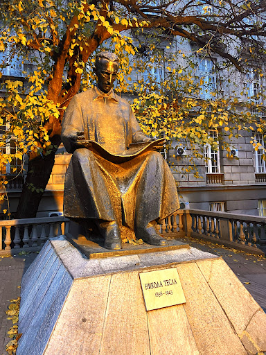 Read moreEin schönes Denkmal für einen bedeutenden Mann direkt vor der Technischen Universität. Nikola Tesla war ein weltberühmter Erfinder, Physiker und Elektroingenieur, der 1856 im Dorf Smiljan geboren wurde. Er ist vor allem für seine Beiträge zur Entwicklung des Wechselstromsystems (AC), der drahtlosen Energieübertragung und zahlreicher weiterer elektrischer Innovationen bekannt. Tesla war ethnischer Serbe und sein Vater war ein serbisch-orthodoxer Priester, was seine starke kulturelle Verbindung zu Serbien erklärt. Obwohl er den Großteil seines Lebens in den USA verbrachte, betrachtete er sich selbst als Serbe und wurde in Serbien wie ein Nationalheld verehrt. In Belgrad steht ein Museum zu seinen Ehren, und der internationale Flughafen der Hauptstadt trägt seinen Namen:...