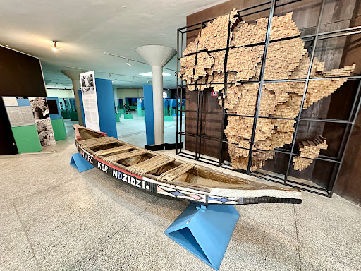 Contrary to my initial expectations, the museum's collection primarily comprises masks, staffs, miniature stools, and musical instruments from a few African tribes and neighboring countries. While the collection is extensive and the artifacts are crafted in a unified style using similar types of wood and shells (possibly cowrie shells), the lack of detailed descriptions and the complexity of understanding the specificities of the tribes and their names make it challenging to retain much from the visit.