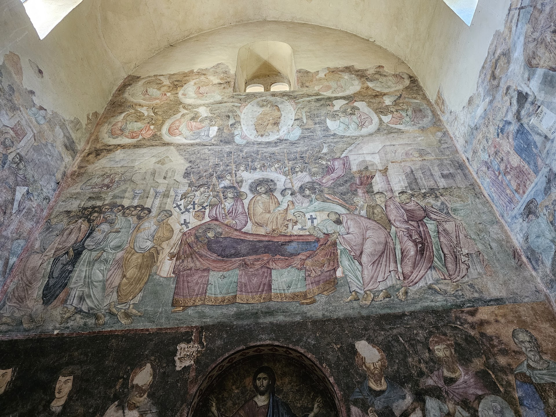 The frescoes in Sopoćani were painted in a similar style to that of Byzantine artists, however the origins of the artists themselves remain unknown. There was a rigid set of steps (setting of plaster, designing with charcoal, application of opsis in various layers, etc.) that were usually followed by these artists. However, there were exceptions to this method, as is the case with the Dormition, which was painted over visible division lines that are usually erased. Some historians believe this to be the result of an oversight on the part of the artist. Sopoćani was declared Monument of Culture of Exceptional Importance in 1979, and it is protected by Republic of Serbia.