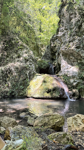 Read moreМы приехали со стороны монастыря. С указателями на месте не очень хорошо, только один указатель у дороги и не понятно куда именно идти. В общем нужно идти по левой тропе возле которой желтый указатель, машину мы оставили на средней, сразу при съезде с дороги. Потом нужно идти по тропе в две колеи до беседки. От беседки прямо-лево, по деревянным ступенькам - можно попасть к узкому спуску к мини водопадикам, а прямо-право дорожка к пещере. Там действительно прохладно. Нам не попалось совершенно никого, поэтому о плате за экскурсию...