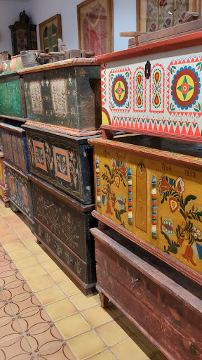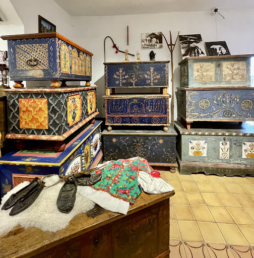 It's mind-blowing how they've collected all these traditional wedding boxes! Some of them are from the late 18th century. They collected it from the Czech Republic, Slovakia, Germany, Ukraine and Hungary. Ask the guy inside to tell you the story, it's...