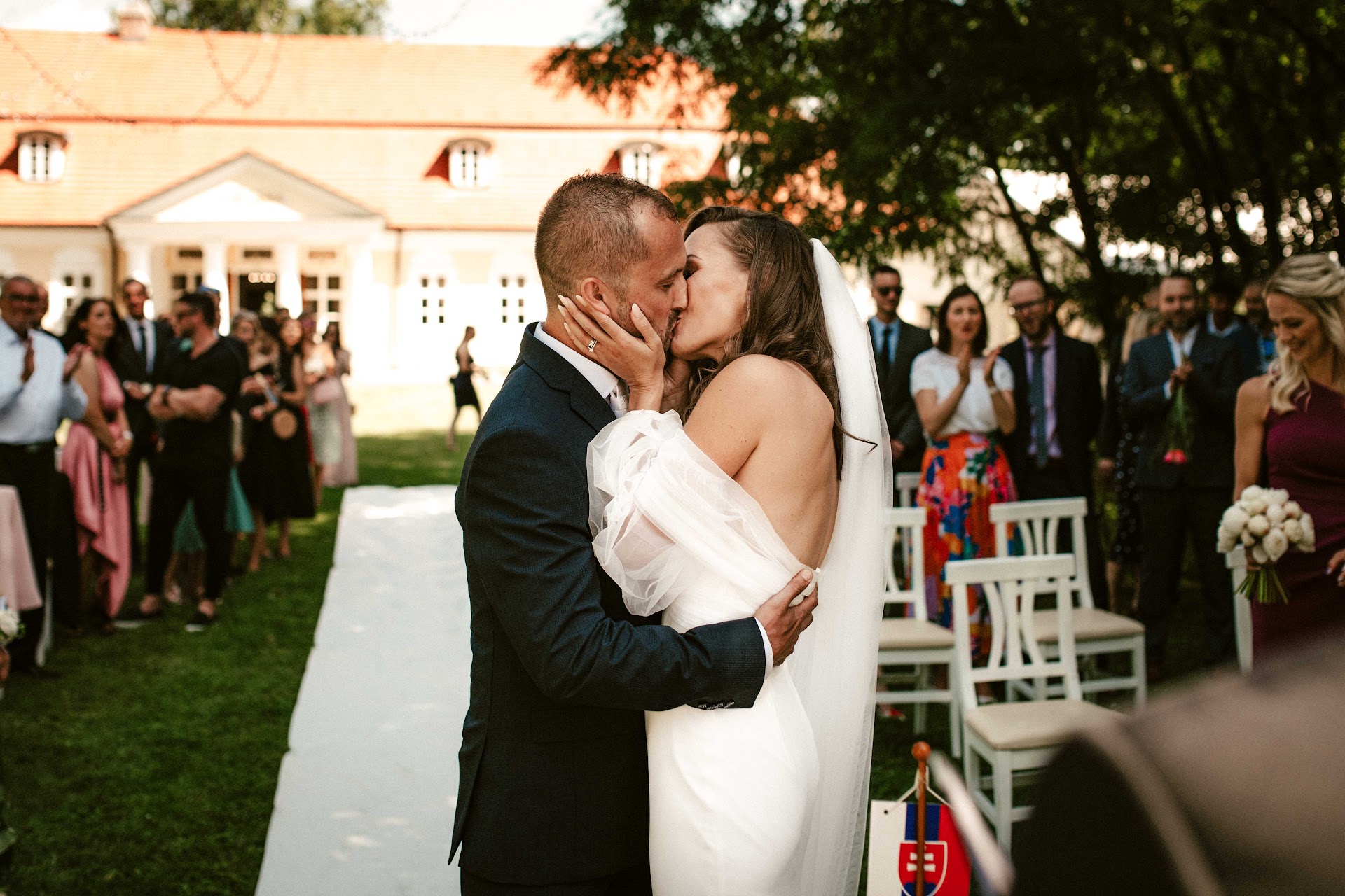 Kaštieľ Villa Bork jsme objevili při hledání svatebního místa na půli cesty mezi Prahou a východním Slovenskem. Na první pohled nás na webu zaujaly fotky elegantního svatebního stanu a krásného zeleného parku, kde je možné uspořádat obřad pod širým nebem. To, co nás ale opravdu přesvědčilo, byla paní koordinátorka Danka, která má svatby v kaštieli na starost a organizuje je od A do Z. Věnuje se výhradně tomuto místu, což je znát na každém detailu – prostředí zná do posledního koutku a přesně ví, co kde funguje nejlépe.