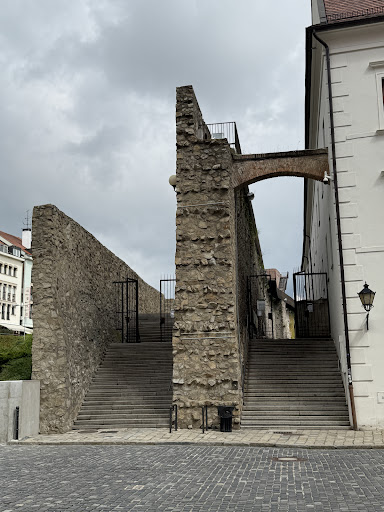 From the Old Town to Bratislava Castle, next to the Cathedral you'll see a huge wall. According to online information, it was part of a fortification construction that started at the end of 14thcentury. The most part of it was demolished, so it was decided to integrate it to the city suburbs.