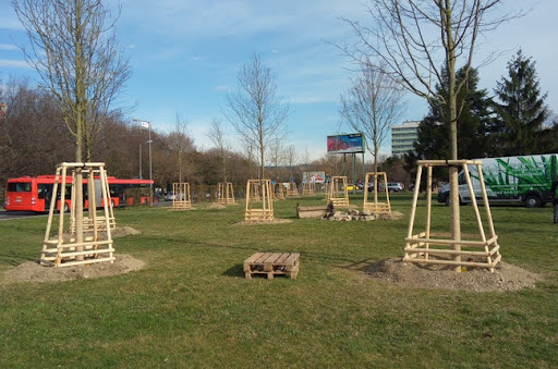 Read moreThe former green lawn with some trees planted thereon under development into a local park for...