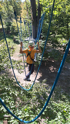 It's harder than it looks like from the ground. Staff is nice, they explained everything nicely - they stricly keep 'safety first' rule. Track in the trees is suitable for kids and adults. It's divided to easier and harder areas. The only thing I didn't like is: some logs and planks need to repair - some of them are partially rotten or weathered, the net is also ripping at the edges. Also some metal lines are frayed at the ends so be careful to not get skin pierced. I hope they fix it for next year season, as I would like to go...