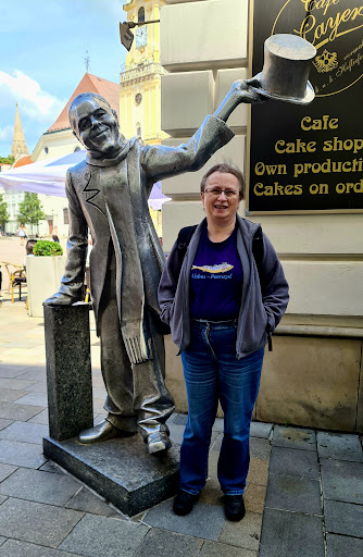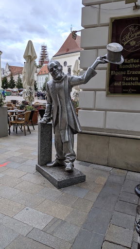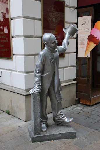 Read moreA quirky statue of Ignac Lamar a local character seen in the city around the beginning of the twentieth century, often in a top hat and tails. He would walk around and greet the ladies with the words "I kiss your hand" in Slovak, German and Hungarian. His grandfather, also named Ignac Lamar, was a clown, the Ignac Lamar in the statue tried to bring happiness as his grandfather had done.