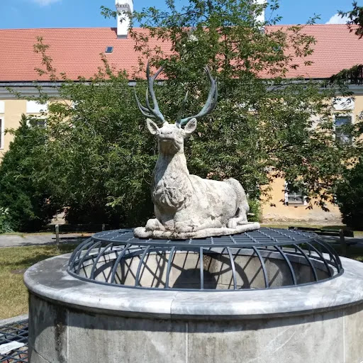 Nice fontain, 2 restsurants, playground for kids - high quality one), 1 ancient building with history behind with 3 underground floors which is still getting digged out by archeologists andvitvis all connected to a park behind the hospital which is who knows how big, but we also met a deer in there, so probably connected...
