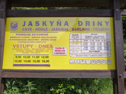 Read moreNehodnotím samotnú jaskyňu, do tej sme sa totiž nedostali. Hodnotím prístup správcov. K Drinám sme si spravili s mamkou výlet aj keď sme vedeli že nestihneme čas prehliadky - meškali sme asi 10 min, čo už bolo pomerne dosť. No spravili by sme si aspoň prechádzku prírodou ak nič iné a ak nám pri vstupe možno predsa len dovolia ešte dobehnúť skupinu, ktorá mohla so štartom tiež teoreticky meškať, bolo by to bezva. Po príchode pred jaskyňu nás "privítala" len zavretá kancelária. Dvere sme skúšali, zamknuté. Hneď za sklenenými dverami bolo však niekoľko ľudí - správcov jaskyne, ktorí evidentne vynakladali značnú energiu aby nás čo najviac ignorovali. Stáli sme tam tak za dverami, chceli sme sa aspoň spýtať, či by sme ešte nemohli vojsť, alebo aspoň si pozrieť prospekty/suveníry. Podobne s nami tam postávalo niekoľko ďalších turistov. Nič. Zamestnanci v kancelárii chvílu zahľadení do papierov v rukách, chvíľu presúvajúc kôpku predmetov z jednej strany na druhú, pozerali všetkými inými smermi len na nás, čo sme stáli necelé 2 metre od nich za sklenenou stenou. Keď asi po minúte správci zistili že sa hneď nepoberáme kade ľahšie, miesto toho aby nás apoň informovali, že je nám ľúto do jaskyne sa už nedá vstúpiť, alebo sa nás len ľudsky spýtať či niečo nepotrebujeme (napr za 30 eur príplatok je možnosť aj individuálnej návštevy mimo pravidelné prehliadky), jednoducho nám pred nosom ZATIAHLI ŽALÚZIE (!). Viac že máme vás v p* už sa snáď ani nedá naznačiť. Už len čerešnička na torte bola, keď sme sa presunuli na neďaleké lavičky, aby sme nabrali sily na cestu späť k autu, po tom ako správci po chvíli zistili že vzduch je čistý, žalúzie si opäť vytiahli hore, asi nech tam nemusia sedieť po tme... V skratke, služby a turizmus na niektorých miestach u nás sú ešte stále na povestný "slovenský" spôsob. Jaskyňa Driny medzi tieto...