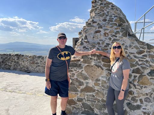 The castle and keep are at the top of a tree shaded hill. Plenty of parking at the bottom of the hill about a 3km steady hike up to the castle gates. The Avenue up is mostly lined with trees which is great as it was a beautiful hot sunny day in September when we visited (car thermometer stated 39degrees centigrade). There are information boards on the way up which help break up the beautiful hike and give you a little rest if you need one. The entry price to the large hill top castle was only 3euro when we visited and if you wanted the guided tour of the main tour only an extra €2 (2023). The guide was kind enough to speak a little English and then switch to Slovak for the other guests. It was a lovely day hike, nice walk and plenty to look at within the castle walls, lots of work in progress to improve the castle. The views were spectacular on such a beautiful day. Towards the carpathians and depending on the conditions it is possible to see Poland, Ukraine and Hungary we were told....
