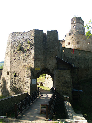 Sam zamek, już po dojściu na szczyt, prezentuje się naprawdę okazale. Ewidentnie jest w trakcie odbudowy, co dostrzegamy spacerując po jego dziedzińcu (betoniarki, metalowe rusztowania, narzędzia). Wejście jest darmowe, można wrzucić do skrzynki "co łaska" ale oczywiście nie trzeba.