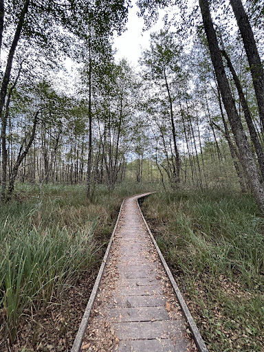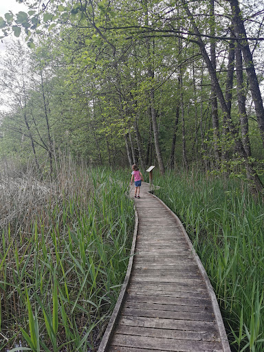 Start of trail is down the road to the right of this point. Sighns and directions are very unclear. Found many people wondering around asking fellow tourist where the hell is the bridge. Parking in the town nearby with a walk along dirt farm roads to wetland (fens) area. 30min walk round trip. Pretty but don't...