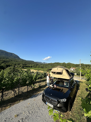 We slept in our car with a rooftop tent, surrounded by the very vines that produced the wine in our glasses. A truly magical experience. During our stay, we took part in a wine tasting where we sampled eight fantastic wines, each with its own unique character and story. Naturally, we ended up bringing several bottles home with us.