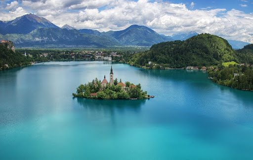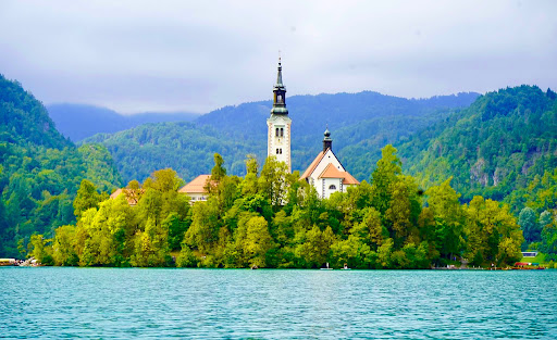 The Church of Mother of God, also known as the Pilgrimage Church of the Assumption of Mary, or Our Lady of the Lake, is located on a small island in the middle of Lake Bled.