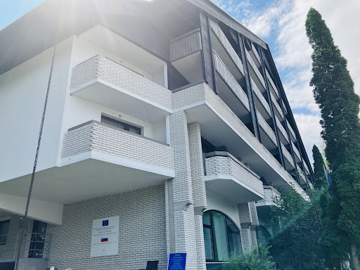 Utensils and Comfort: The mattress on the bed is quite hard and potentially uncomfortable if that is not your thing. The bed is also quite short, I am not that tall (177 cm) and I barely fit length wise. There is a lot of storage space in the room and a big couch in the living room to lounge on, even though the cushions do slide off easily. However, when we tried to make a meal in the kitchen, there were a lot of difficulties. The electric stove is confusing to use, there are some missing utensils and the refrigerator is not on originally, so it took some time for it to cool. There are lots of great restaurants in Bled, so I recommend just eating out. The bathroom is a little small, there aren’t many issues when just using it for vanity, but the shower is a little uncomfortable since it is not very spacious and only has a moving door that doesn’t keep the water in sufficiently. It also varies in temperature when on, which is not ideal. The hotel does provide a swimming pool in its sister hotel, which is very big and has lots of tanning beds, some with beautiful views!