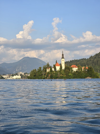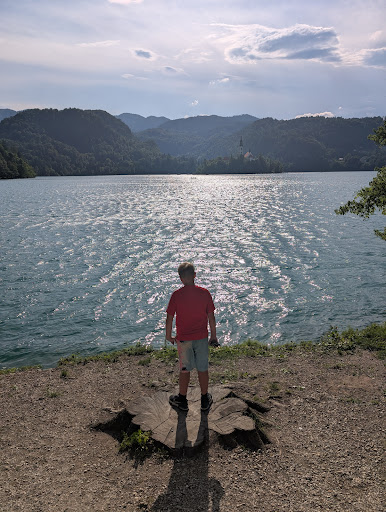 The beach is stony but shallow for quite a distance so your small kids can play safely. There is no swim "area" but rather the entire area is open for swimming. Also, there is a kayak/rowboat/SUP rental there. Don't pay to swim at Lake Bled. This location has everything you will need.