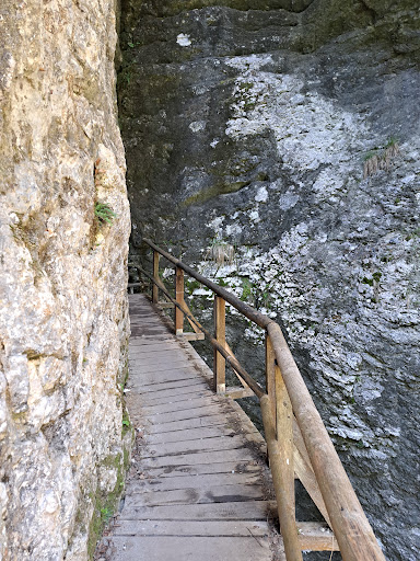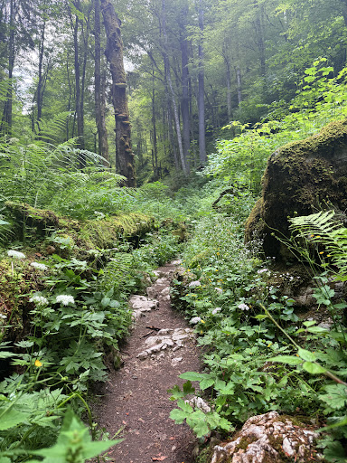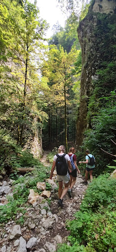 We caught the free bus up from Bled and instead of getting off at Zatrnik we went on a further 1km or so to where a forest road went off to the right and asked the driver to drop us off there. Follow your way down the road to where there is another sharp right and you can drop down onto the Slovenian Geological Trail. You can then descend all the way downhill to the car park through the gorge and the galleries and then walk out to Krnica to get the bus back. This way builds the surprises as you make your way down.
