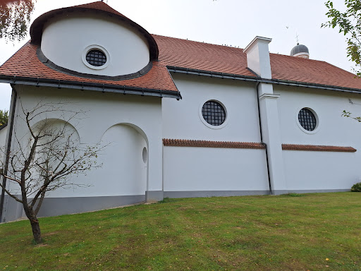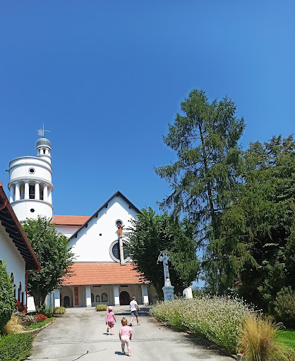 Read moreThe church was built between 1924 and 1927 at a right angle to an older single-nave baroque church. The architect put a dominant cylindrical tower next to the entrance - a belfry with forms typical for Plečnik. On top of it stands a terrace with an additional tower, and another one at the end of the old church. Above the front entrance a statue of Christ reigns from a simple column. The nave is accentuated by serried arcades on the north and south side. Plečnik conformed to regional building tradition and used old Christian architectural features (stone columns, flat wooden ceiling). The ceiling is unique - made of round beams and boards. Plečnik adorned it with the products of...