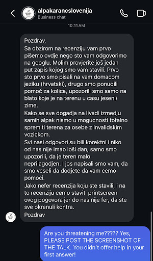 EDIT: check the screenshot of what they wrote to me AFTER I write the review here. This just prove my point! I’m not Croatian so I wrote in English. I thought they would answer in English but this is really not the big problem here. What now? I can’t write reviews on Google anymore???? This is absurd in so many levels!