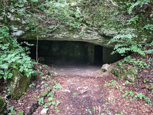 Dojazd leśnym duktem i nagle las otwiera się na sporą polanę. Na wprost duktu wznosi się skalna ściana, w której rysuje się otwór prowadzący do jaskini. Grota jest niewielka. Wewnątrz na jednej ze ścian zamocowane są drzwi, prowadzące zapewne do podziemnych korytarzy. Przed jaskinią na polanie znajduje się miejsce na ognisko. Wokół cisza. Słychać jedynie śpiew ptaków. Warto odwiedzić, by chwilę...