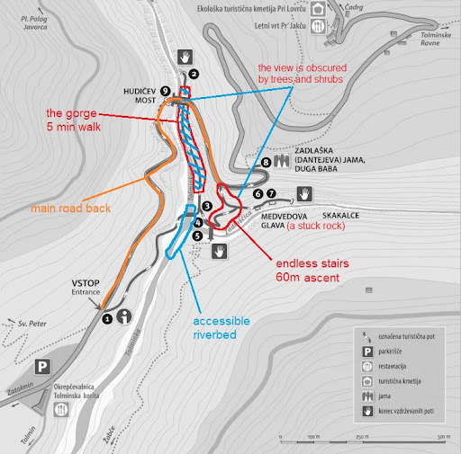 Read more!!! READ ME BEFORE DECIDING TO GO HERE !!! False advertising at it's best! We were really excited for our final experience in Julian Alps, visiting every other thing they have to offer for several days of our stay, but this was such a let down, I had to write a review to warn future visitors. The "trail" has two parking lots, 1st being at the entrance and costs 3 EUR/h, 2nd one is 1 km from the entrance, its free (for now) but the shuttle service is not (info from one of the visitors). That's all OK. What is not OK, is that once you pay for the tickets and listen to the info person telling you that there is a circular trail, 1:30 h of walking and sightseeing - you notice very fast that the gorge is accessible for 100m only and then you return back to exit. That's it. The river bed itself isn't something new or spectacular - you can wet your feet, chill by the river... there are more beautiful (and free) ones in the vicinity. Your 1:30h long sightseeing hike is really a 5 minute one, then you head up the stairs (very hard on a hot day) not seeing anything until the top of the gorge - where you end up on a main road and follow it back to the entrance. So you pay up 8-10 EUR per person for a 5 min hike, few nice pictures (all of online pictures of the gorge are from the same spot!!!) and then 30-60min of walk on endless stairs and a main road. Terrible deal. We (and visitors around us) were deeply disappointed and felt scammed at best. Fool me once, shame on you....
