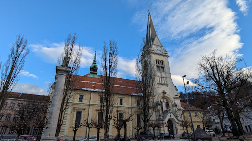 Costruzione: La chiesa fu costruita dai gesuiti come la prima chiesa gesuita nelle terre slovene e una delle prime nella regione della Inner Austria. L'edificio barocco presenta un design interno creato dall'architetto italiano Francesco Robba, che ha progettato l'altare principale, mentre lo scalpellino sloveno Luka Mislej ha realizzato il portale d'ingresso e gli altari laterali in pietra. Rinnovamenti: Dopo il terremoto del 1895, la chiesa subì notevoli danni e fu ristrutturata dall'architetto Raimund Jeblinger di Linz, con gli interni ridisegnati da Janez Šubic, mantenendo gran parte dello stile barocco originale. Elementi Notevoli: La chiesa ospita la Cappella di San Francesco Saverio, aggiunta tra il 1667 e il 1670 e decorata con sontuosi stucchi. L'altare della cappella è adornato con statue di Paolo Groppelli e Jacopo Contieri.