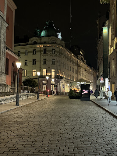 The breakfast they serve is the reason to stay at this hotel above all others. It's seriously good and it's so popular that getting a seat can take a few minutes, at least until they start opening up adjacent rooms. Seriously, it's a lively experience. They have a full spread for breakfast, including sausage and eggs, pastries, fruit juices, coffee and cereal. Almost any breakfast food you can think of actually, and then for good measure a few that aren't your typical breakfast foods. The location is very central to Ljubljana, with the castle a 20-25 minute walk away (although be careful as it is significantly uphill. If you're not in decent shape it's probably a better idea to drive up the hill and park at the castle.) There are a handful of cafes nearby, if you exit the hotel and take a right. Once you get to the river, if you go left before crossing the bridge, that puts you at a place named cacao which is highly recommended. That entire district is exciting, even when I was there in January. Everyone speaks English but they do appreciate it if you learn a few basic phrases beforehand. Google translate is your friend here. The hotel is kept up well, but as is typical of the area, the fit and the finish of everything is a bit worn down. The shower bucks this trend at the expense of having an unusual configuration - the hardware is on the side of the tub facing towards a glass panel that runs about 2/3 the length of the tub with a swivel door. Don't make my mistake and open the door to turn on the shower and you won't get water all over the floor like I did. Also, it's a lot easier to pull the shower head out than to try and contort yourself to stand under the shower head. One of my favourite features was they put light switches for everything right next to your bed so you don't have to get up if you forget to turn off the bathroom light, or you can turn on the lights for yourself without having to fumble through the dark. Really wish more hotels would do this because it made my stay a lot better. Also, there's an Avis / Budget rent a car office in the hotel so if you rent a car at the airport from them you can just leave it in the parking deck (remember to fill up with petrol though) which is extremely convenient if you're going to the bus station nearby. Even if you're going back to the airport parking is complimentary and there's usually a space or two even at peak times even if the parking deck is a bit tight (entrance / exit is only one lane so you have to proceed with caution). Overall this is a really solid contender if you're staying in Ljubljana. I would say the benefits of the location and the conveniences well outweigh any trepidations you might have about the age of the carpet or configuration...