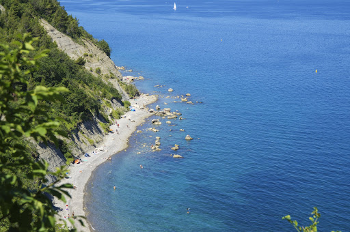 A small but beautiful wild beach. Rocks might bother some people and be liked by others like divers. Don't be surprised to see naked bodies, it's an unregulated beach. But it's a part of the very beautiful Moon Bay (Mesečev Zaliv), so maybe you can come here just to explore it, below on the beach, or from the trails above the magnificent cliffs. You might relax on the beach, have a morning run above it from one of many apartments or hotels nearby, or maybe you are trekking from Izola to Strunjan Soline on a very nice trail above the beaches with many nice views of Izola, the gulfs of Koper and Trieste, Strunjan and Piran. You might have zoom lenses or strong binoculars and you can 'explore' coasts of Italy from Trieste to...