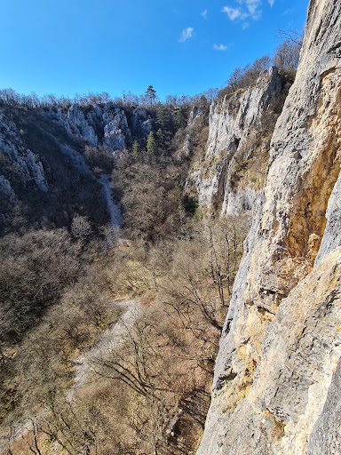 Read moreUdorna dolina, ki se nahaja slabih 500 metrov južno od železniške postaje v Divači, je nastala z vdrtjem stropa nekdanje jamske dvorane. Njen nastanek je povezan z nekdanjim podzemnim tokom reke Reke, ki je spremenil smer in danes teč precej globlje. Povprečen premer udornice je 220 metrov, njena povprečna globina pa 72 metrov. Dno udornice je precej uravnano, proti obodu se dvigujejo melišča, ki proti vrhu prehajajo v visoke prepadne stene. Skalni obod je prekinjen le na enem mestu, kjer se lahko po melišču spustimo na...