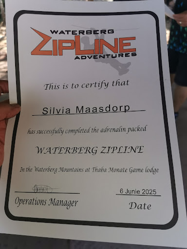 Oh, and thank you for the certificates Bianca. So far Waterberg Ziplines Adventures are the only place that have given us...