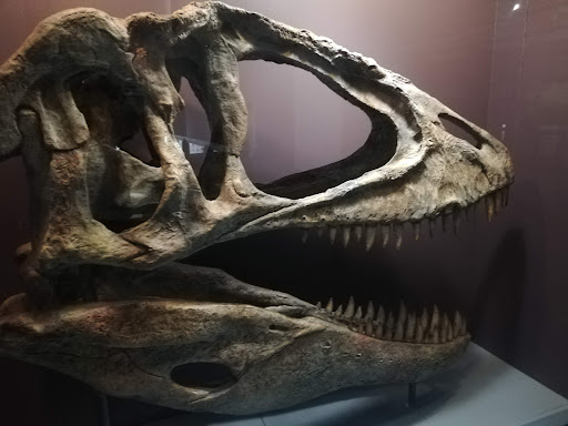 Dead flies litter the exhibition cases. The dinosour skeletons have not been dusted in ten years. Their display base has become dilapidated and broken.