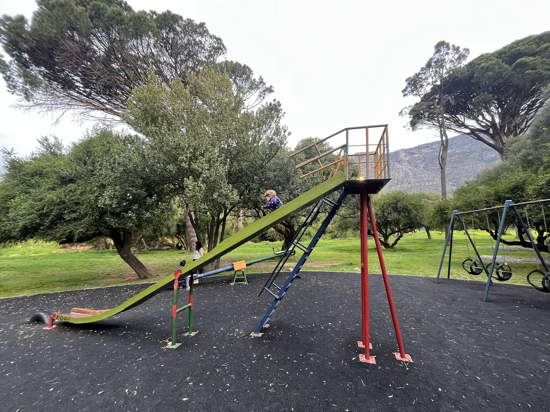 This is a fenced and neat park where the kids can enjoy the playground and doggies can run around on nice green lawns off the leash! You have beautiful mountain views and you're pretty much alone as there are only very few people around. This park is probably best known to the local residents there and not as crowded as De Waal Park. Every Saturday from 8am to 2pm, there is the Mountain Market where the community sells authentic food, organic fruits and vegetables and some clothing and accessories. A great little market to go to on a Saturday morning with good vibes, friendly people and yummy food. Just make sure to bring along a picnic blanket or chairs. There are no tables or seating options at the park itself and it also doesn't have any...