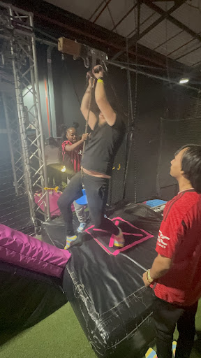 There's also a basketball area for those who want to try and slam dunk. There's also a high performance area with a super trampoline that allows you to jump very high. It's tons of fun for both kids and adults. Highly recommend visiting Bounce.