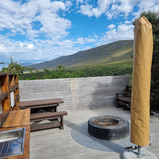The cabin was extremely warm with the wood burner, however keep in mind that no ax/wood choppers are provided, so make sure to bring smaller pieces for starting your fire. The inside braai area was more comfortable than the lounge couches which need some new cushions for the seats. The kitchen utensils are on the bare minimum scale. Bowls are for a small dessert maybe. We ended up eating out of the salad bowls, or doing multiple servings in the smaller bowls as we pre cooked soups and broths and brought them frozen. Defrosting was also a bit tricky as the pots medium walled and cast iron. I would imagine good for a small poitjie. (size is relative I know but I figure people hiking have a bigger appetite) As the whole house is wooden every step creeks. This was not ideal with a baby when trying to creep around not being heard or rocking baby to sleep. Beds are very firm. Luckily we kept the doors locked whilst inside as suggested/reminded by many signs around the cabin as a troop of baboons did come spend an afternoon around the cabins playing on the lawn. One of them tried our door. However they seem more skittish of humans than the troops along the Cape peninsula. Being there in winter we did not get to try out the pool although the sun chairs looked comfortable under a shaded area which had fans installed. I would imagine it being a great way to relax after a good walk or ride. The out door work out area at the pool was a...