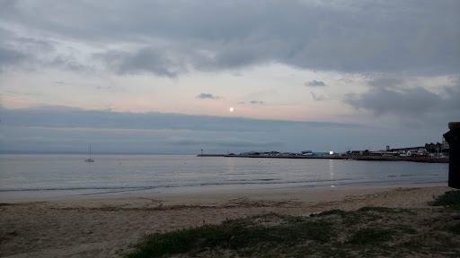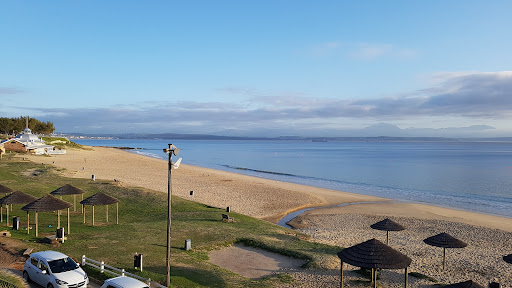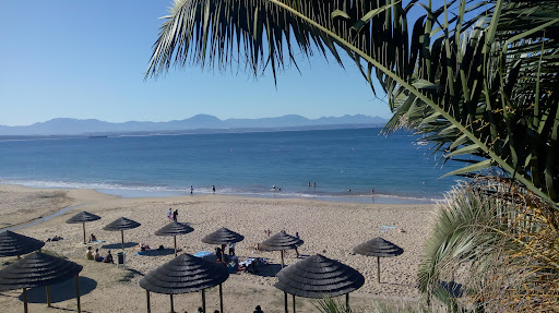 What a lovely user friendly family beach. Hardly any waves so young kiddies could enjoy themselves with their parents. A safe beach stretching deep into the ocean to the nets. For the taller persons we were able to virtually stand on our toes close to the nets. Power boats, yachts and other craft were on the other side of the well marked and cordoned off area. Come early in the morning to claim your little thatch roof sitting area. Perhaps more of these should be erected. There is a large parking area with car guards and a large old dated Victorian type seaside restaurant serving food and drinks all day long inside and out on a deck.